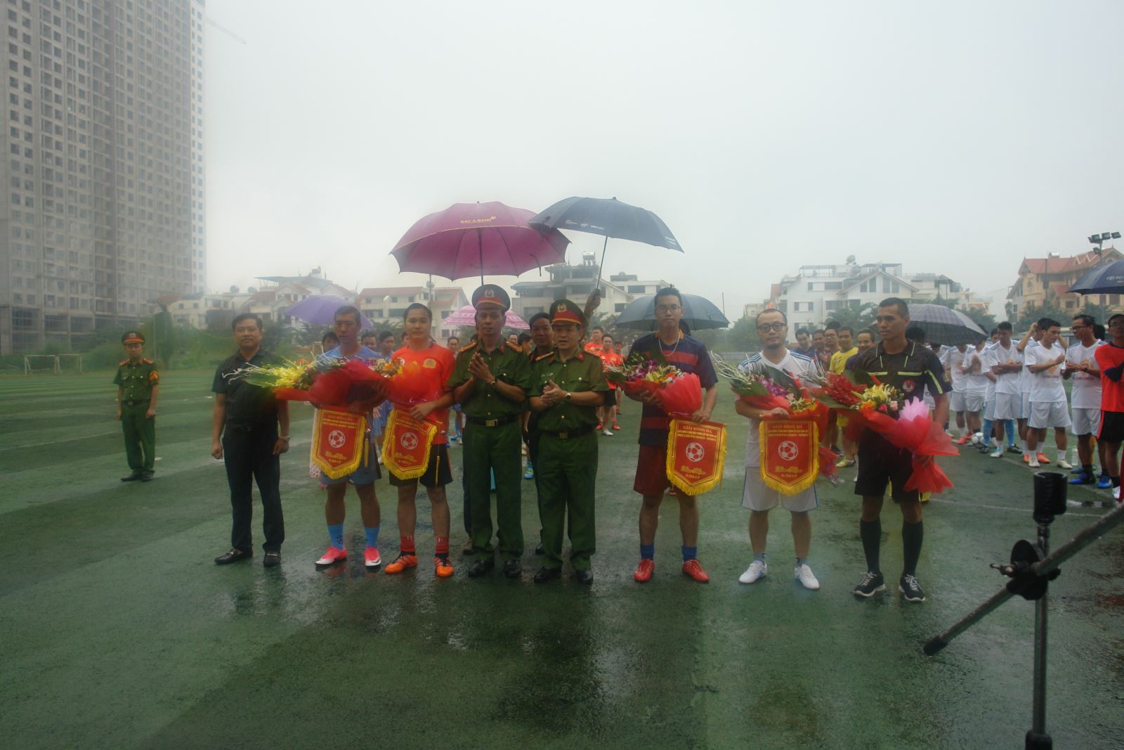 Thủ trưởng đơn vị tặng hoa cho đại diện các đội bóng