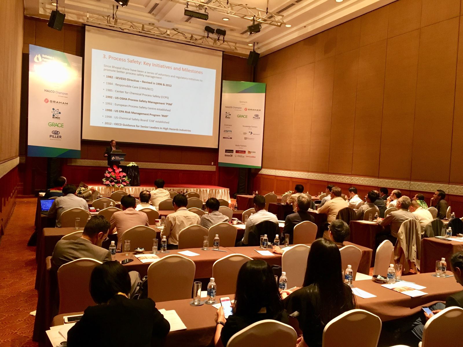 Các diễn giả đến từ Công ty Muse & Stancil, Công ty tài chính quốc tế (IFC) thuộc Ngân hàng thế giới, công ty Lọc hóa dầu Bình Sơn (BSR), công ty Lọc hóa dầu Nghi Sơn (NSRP), công ty Petronas… cung cấp một cách nhìn đa chiều với các chủ đề toàn cảnh định hình thế giới như: Các yếu tố bất định trong thị trường dầu khí; Quản trị rủi ro ở các thị trường mới nổi; Vấn đề ăn mòn và hệ thống theo dõi & giám sát trong nhà máy lọc dầu; Một số giải pháp phân tích cao cấp dựa trên công nghệ dữ liệu lớn…
