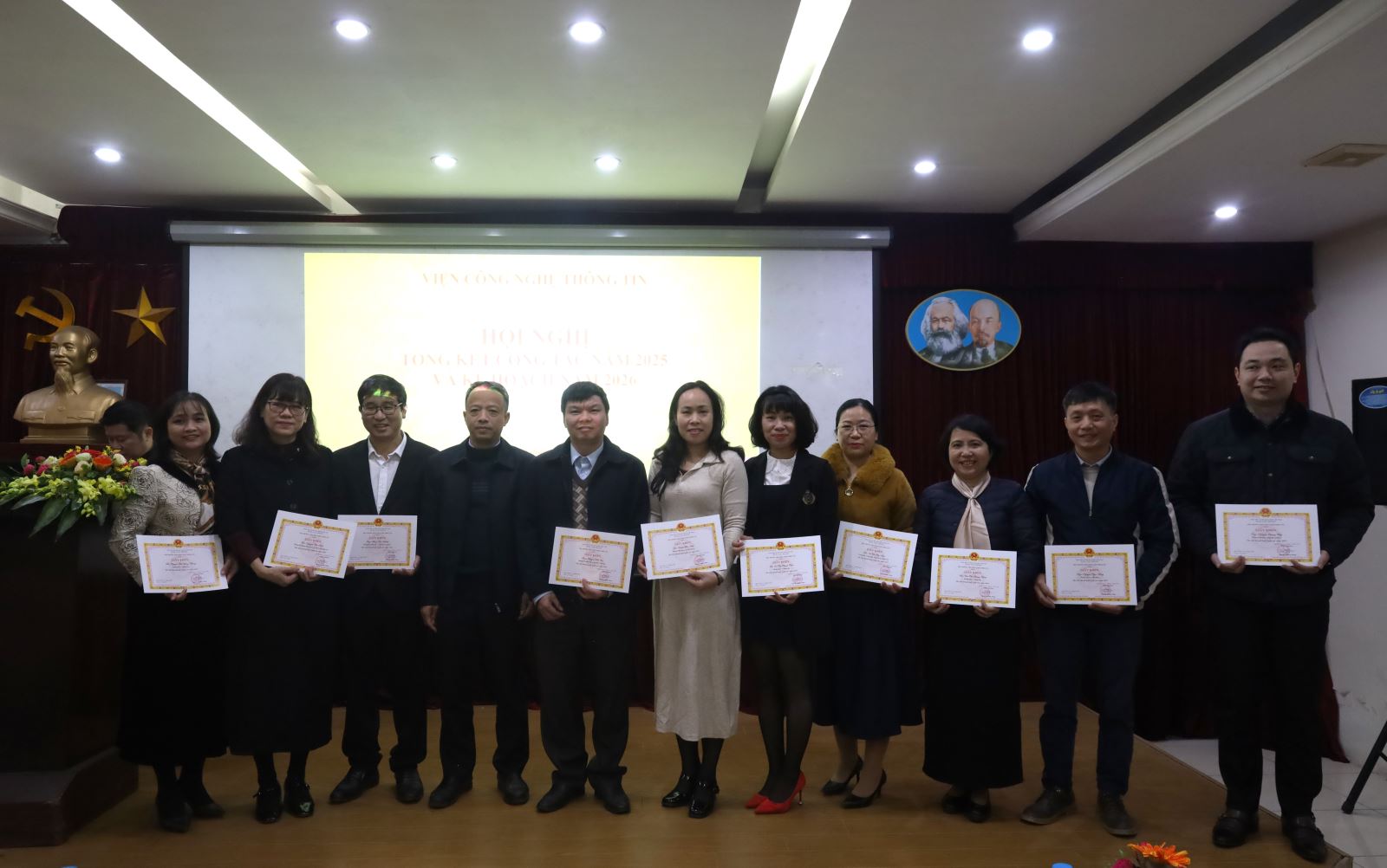 Trong năm qua, Viện CNTT có nhiều cá nhân có thành tích xuất sắc trong công tác, Ban lãnh đạo Viện đã trao danh hiệu Tập thể lao động xuất sắc, Chiến sĩ thi đua cấp Viện, Giấy khen của Viện trưởng cho những tập thể, cá nhân có nhiều đóng góp cho sự phát triển của viện trong năm 2025.